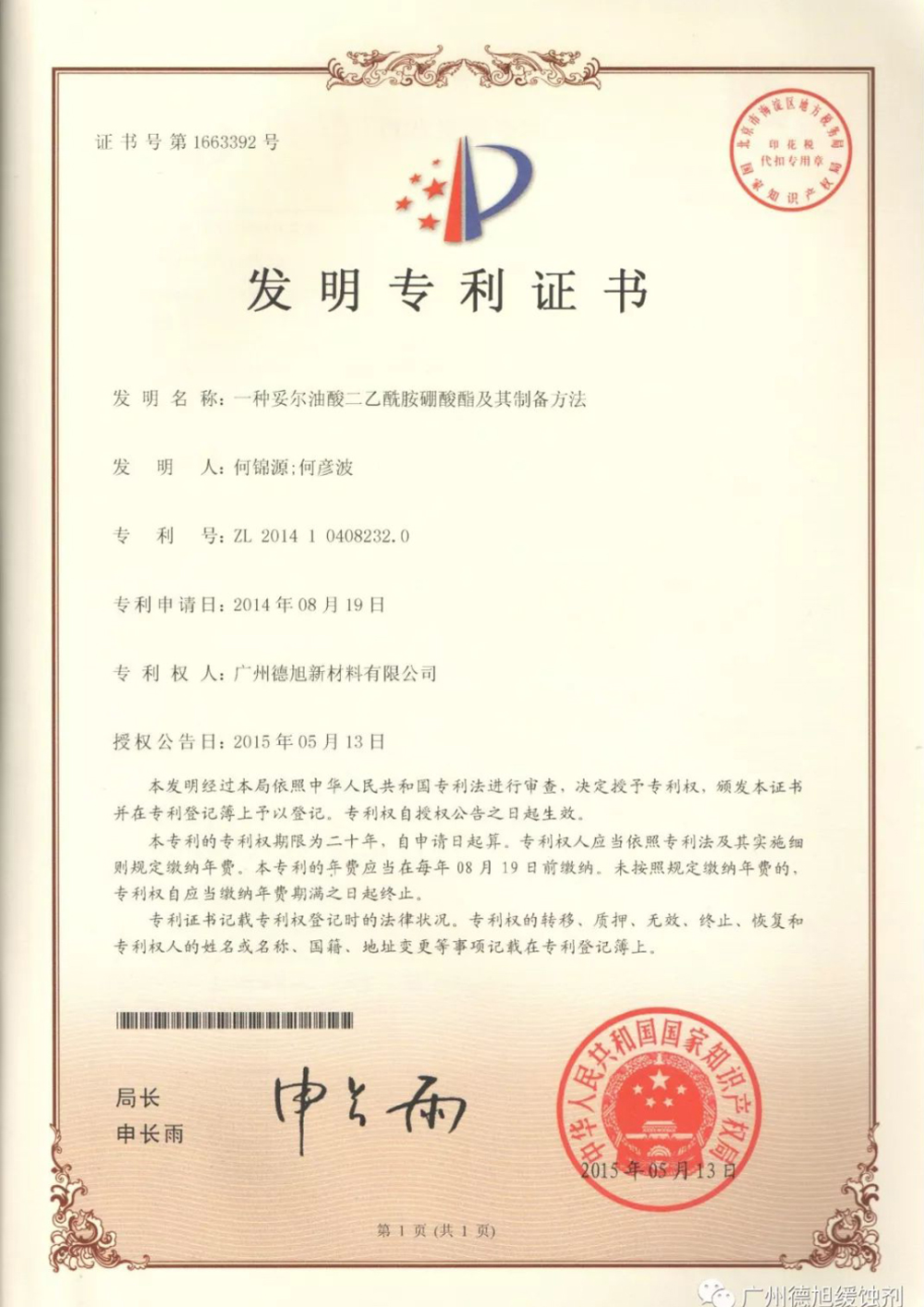 德旭新材料(广州)股份有限公司成立于2012年,坐落于国内新材料领域创新集聚区的广州高新技术产业开发区核心位置——广州科学城,是一家集研发、生产、销售于一体且拥有自主知识产权的专精特新企业。长期专注于金属材料的防腐蚀研究与创新,为汽车与船舶、航空航天、半导体及3C电子、新能源、水性防腐涂料等领域的金属防腐蚀提供产品和解决方案。同时也服务于工业润滑、金属表面处理、工业、商用和民用重油污清洗和益智玩具等行业。公司产品获得BASF(巴斯夫)、HP(惠普)、汉高、美泰、MOOSE、中国船舶、中国机械总院、安集、汇川、三环、晨光等国内外知名企业的青睐。